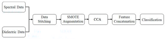 To fully utilize the hyperspectral imaging information and dielectric characteristics of apples for non-destructive detection of apple core browning, a multi-view learning approach was adopted to fuse the optoelectronic data of apples. The feature vectors from both views were merged using the concatenation method, and then the samples of core browning in the dataset were augmented using the SMOTE (Synthetic Minority Over-sampling Technique) method [34].