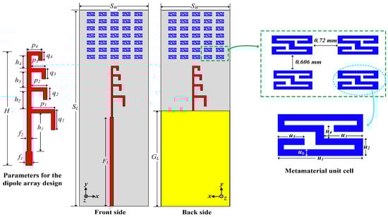The geometry and design parameters of the proposed metamaterial-integrated dipole array antenna.
