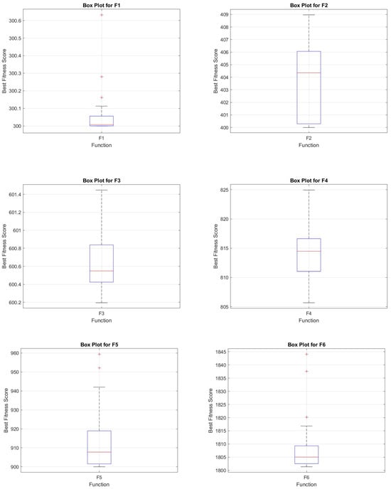 In the Cybersecurity Optimizer, exploration is primarily achieved through mutation and crossover operations. The hybrid mutation strategy, as defined in Equation (8), generates new candidate solutions by integrating components from the top-performing individuals () and randomly selected individuals ( and ). This process introduces diversity into the population, thereby allowing the optimizer to explore novel regions of the solution space. The scaling factor (), which is dynamically modified via the memory mechanism (refer to Equation (6)), ensures that mutation intensity is varied throughout the optimization process, promoting exploration in the early stages and decreasing it as the population converges.