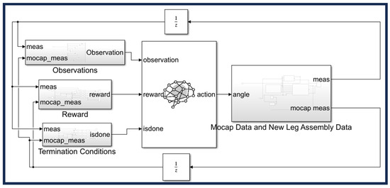 - Perform the action, obtain the new observation signal and reward signal, and determine if the episode ended prematurely by checking the ‘isdone’ block (does the distance between the leg model and mocap joints exceed the threshold?).