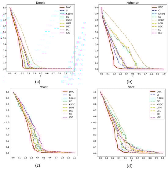 From Table 7, it can be observed that the robustness value of the DNC method is the lowest. Therefore, in the aforementioned three networks, DNC demonstrates higher accuracy compared to the baseline methods.