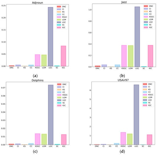 - Low time complexity: Since it only utilizes a node’s degree and first-order information, DNC only necessitates the computation of first-order neighbor information, leading to a temporal complexity of , allowing DNC to be effectively applied to large-scale networks.