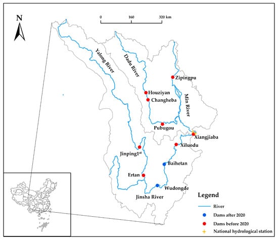 Major reservoirs in the basins of the Jinsha River and Min River, the upper watershed of the Yangtze River.