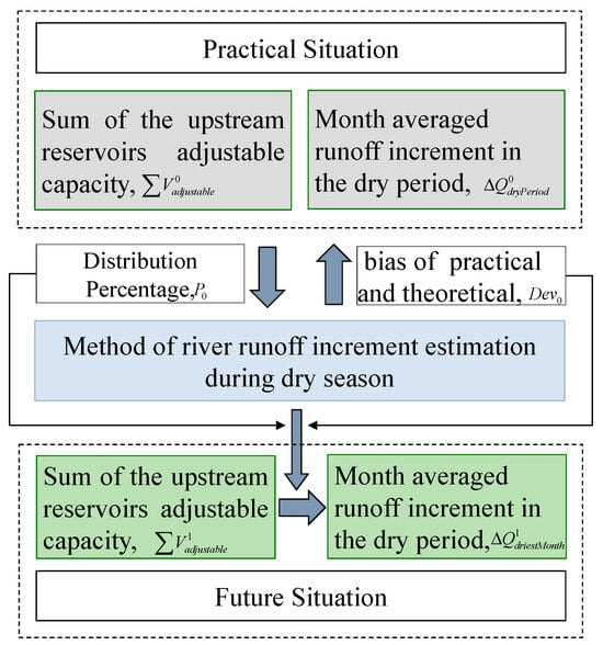 Based on the correlation between downstream river hydrological alterations and reservoir operation during the dry period, an estimation method was developed to predict the increment of river runoff in the dry season when additional dams are constructed in the future. The framework of this estimation method is illustrated in Figure 6.