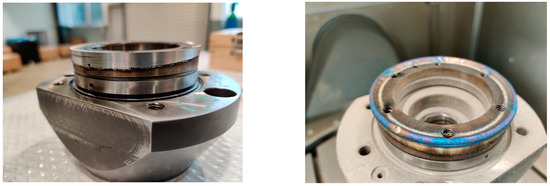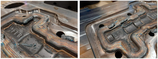 Mould repairs for reuse—downtime costs can increase rapidly when cracks or wear appear in the mould cavity area or even on the mould surface. The laser deposition process is the only existing process by which the existing part can be repaired or even reconfigured, allowing material compatible with the material from which the base piece is made to be added (e.g., Figure 1 where a CNC component is repaired using compatible material) [10,11,12].