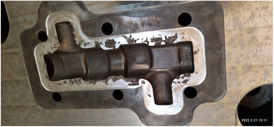 Following the hot forging process, the semi-moulds encounter wear and tear, especially along the rounded edges defining the cavity of the resulting product (e.g., rough stock). Additionally, material removal during the forging process causes pitting, damaging the active surface of the mould cavity and rendering it unusable, as detailed in Figure 12.