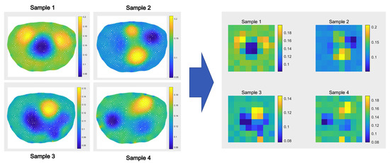 In this experiment, we use the finite element method to solve a direct EIT problem with approximately 5000 triangular elements. The raster data are on the left side of the Figure 6. In addition, we do not investigate the effect of mesh granularity on the accuracy of different reconstruction techniques. Before training the model, the resulting finite element mesh data must be converted to the graph data format required for neural convolutional graphs.