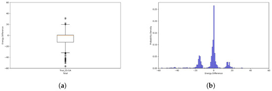 We measure the difference between when ES is applied and that when GA is used and draw the distribution of the difference in in Figure 5. The circles in the box plot (Figure 5a) represent the outliers. We observe that the distribution of when GA is applied is very similar to that of when ES is applied. Specifically, the Q-values in the box plot are , , and . In addition, we observe in Figure 5b that the difference in is densely concentrated around zero. We also examine the Q-values of when ES and GA were applied, respectively. When ES is used, it is , , and , but while GA is employed, it is , , and . Thus, the difference between Q-values obtained by GA and those when ES is applied is marginal.