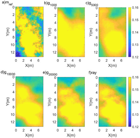 (a–f) Means of posterior realizations using trained neural network and ray method.