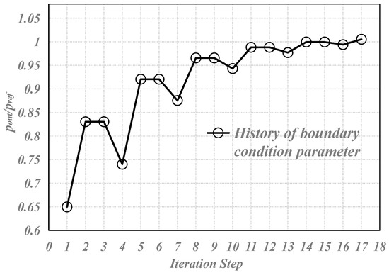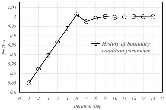 Iteration history of the outlet boundary condition using the optimization algorithm.
