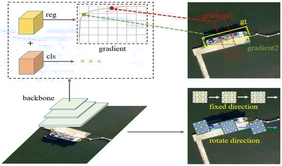 Aerial targets often have the characteristics of a high aspect ratio, multi-directionality, and a dense layout. Most mainstream networks have horizontal detection boxes. If directly applied to aerial targets, the detection boxes will contain a large amount of background information, and invalid background information would lead to a decrease in detection accuracy. These mainstream networks adopt a multi-task learning mode, which trains both classification and regression tasks simultaneously. The loss function is defined as follows: