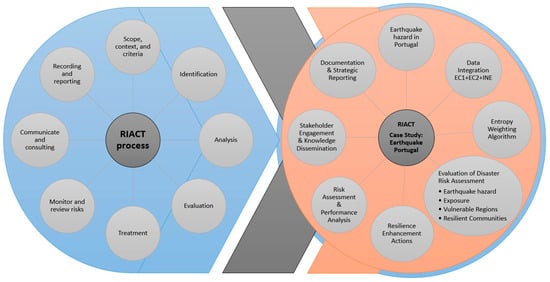 This study introduces the Risk-Informed Asset-Centric (RIACT) process, a novel approach aimed at enhancing the safety and resilience of urban infrastructures against natural and man-made disasters. The RIACT method stands out for its comprehensive analysis of potential disruptions to urban areas, encompassing their susceptibility to disasters, vulnerability factors, and recovery capabilities. This study’s primary focus is on Portugal’s 308 municipalities, assessing their preparedness and ability to recover from earthquake events. Methodologically, the study involved employing geographic information system (GIS) mapping to evaluate earthquake risks, combining data on regional risk areas, demographic and economic profiles, and resilience capacities. This approach provides a detailed understanding of each municipality’s strengths and areas in need of improvement, encouraging a collaborative framework for sharing and implementing best practices. The results reveal significant variations in earthquake resilience across different regions, highlighting the need for tailored resilience strategies. Conclusively, the RIACT method not only enhances the resilience of individual municipalities but also contributes to a broader national strategy for urban resilience, offering valuable insights for effective disaster risk management and recovery planning.