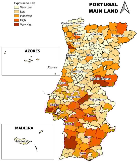 - Rezvani, S.M.H.S.; Almeida, N.; Silva, M.J.F.; Maletič, D. Resilience Exposure Assessment Using Multi-Layer Mapping of Portuguese 308 Cities and Communities; Springer International Publishing: Cham, Switzerland, 2023; ISBN 9783031254475. [Google Scholar] [CrossRef]