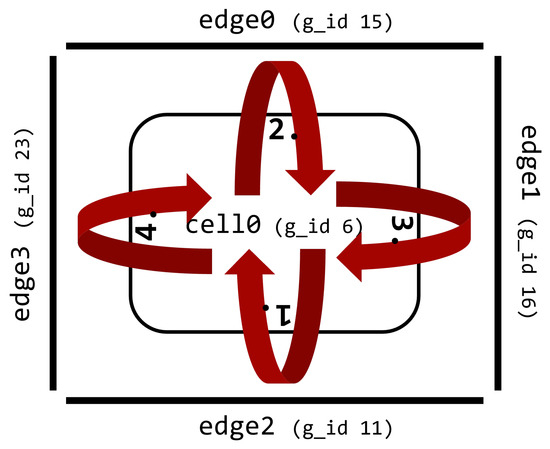 Example execution order of edges around a cell. Due to local id renumbering, the global ids must be used for a reproducible execution order.