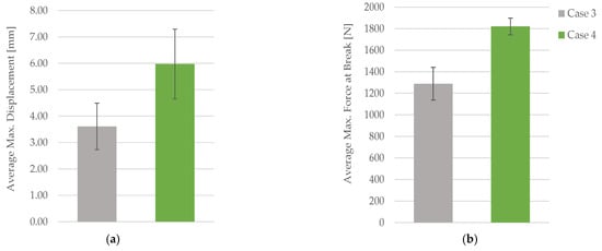 The average value of the maximum force at failure followed the same trend, as shown in Figure 14f.
