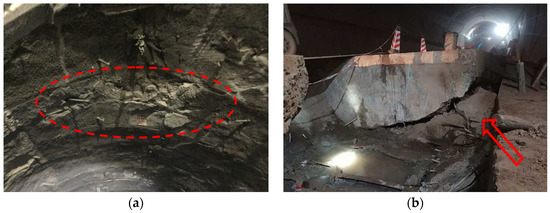 Typical large deformation diseases in engineering sites: (a) Initially branch the block peeling off; (b) inverted arch uplift.
