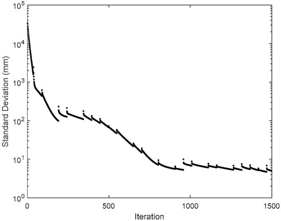 Here, we established a stop criterion to enhance the optimized performance and quality of the recovered depths. As each epoch of the Iterative Low-Pass Filter (ILF) yields an expanded depth matrix, it becomes essential to evaluate the termination point of the ILF process. To determine the optimal iteration steps, we analyzed the alternation between standard deviations in each epoch and the number of iterations. The stop criterion was designed to satisfy two conditions: the deviation between the results of consecutive iterations was sufficiently small, and it reached the maximum iteration limit.