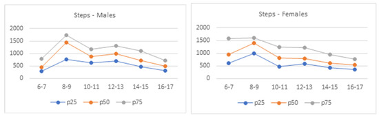 - Sulla-Torres, J.; Vidal-Espinoza, R.; Avendaño Llanque, C.; Calla Gamboa, A.; Zúñiga Carnero, M.; Cossio-Bolaños, M.; Gomez-Campos, R. Quantification of the Number of Steps in a School Recess by Means of Smart Bands: Proposal of Referential Values for Children and Adolescents. Children 2023, 10, 915. [Google Scholar] [CrossRef] [PubMed]