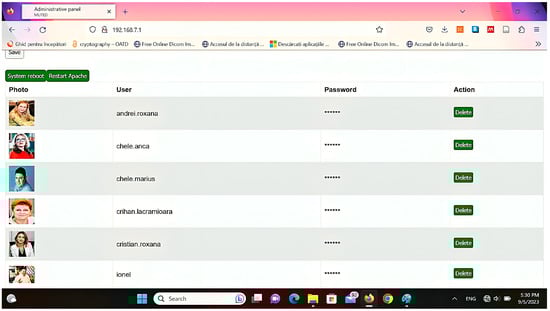 More than that, an advanced configuration in the Windows registry key and group policy management is needed to have sufficient rights to execute facial recognition and distinguish individuals based on their physical features. In addition, a secure graphical web interface in PHP and Apache is created for the users’ database management, which can be accessed online using a link associated with a static IP address, as shown in Figure 2.