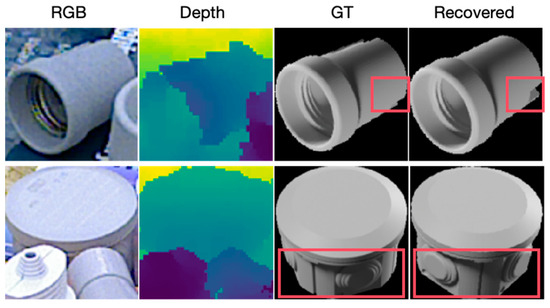 To further explore the value of depth features, an experimental group was established by introducing masks into depth images to segment and isolate the depth data containing only object regions. These masks used were derived from the T-LESS dataset. The segmented depth images underwent the data preprocessing operations outlined in Section 4.1, ultimately scaling the depth values to fit within the range of 0 to 255.