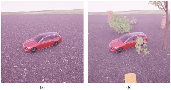 Visualization of the Objects in Environment parameter. (a) Objects in Environment with value False; (b) Objects in Environment with value True.