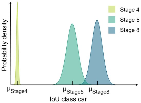 Table 3 provides a summary of the results from the second experiment, which compares the performance of the best model trained with synthetic data to that of the best model trained with real data. Both models underwent training with augmentation techniques, including scaling, rotation, added noise, and color variations. For each test scene, the model with the better class car IoU prediction is highlighted in green. In the conducted test the synthetically trained model performed 9.1% better than the model trained with data from the target domain. Thus, the approach of using the Auto-ML system to find suitable training data is superior to the approach of creating a model based on the existing real data for the given task. The overall performance of the synthetically trained model suffers mainly from the poor prediction on Scene 8 (Figure 8).