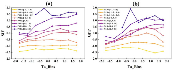 | GPP–SIF (EF Bins) | GPP–SIF (Ta Bins) | |