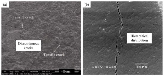 Figure 4. (a) Microscopic discontinuous fractures [7]. (b) The hierarchical distribution of microscopic discontinuous fractures [34].