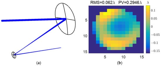 Afterward, the setup for aberration measurement of the optical system is established, as shown in Figure 10b. The optical system has a focal length of 8 m with an aperture diameter of 560 mm. The testing procedure is outlined as follows: