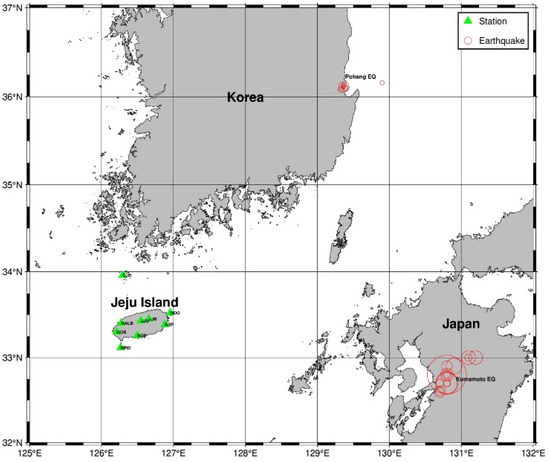 In 2016, Kyushu Island in southwest Japan experienced a sequence of 15 earthquakes in the Kumamoto region. The mainshock, registering a magnitude of 7.3, was detected by seismic stations in the Jeju area, located approximately 367–429 km from the epicenter. The earthquakes had a focal depth of 10–20 km, indicative of mid-crustal seismic activity. These seismic events resulted in over 48 fatalities and caused substantial damage to buildings and structures in both the Jeju area and inland cities.