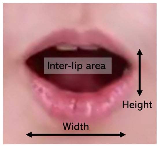 For each lip patch r, seven feature values are generated: width, height, area, intensity, x and y values of the central point, and orientation. The box width is the inter-lip width. The height is the inter-lip height. The area is the number of pixels, The intensity is the sum of each pixel density value (the darker the inter-lip area, the deeper the mouth opening and the larger the sound intensity), as shown in Figure 11.