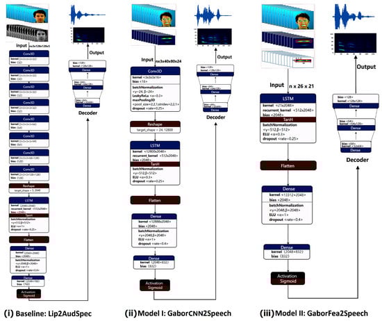 - Akbari, H.; Arora, H.; Cao, L.; Mesgarani, N. Lip2audspec: Speech reconstruction from silent lip movements video. In Proceedings of the 2018 IEEE International Conference on Acoustics, Speech and Signal Processing (ICASSP), Calgary, AB, Canada, 15–20 April 2018; IEEE: Piscataway, NJ, USA, 2018; pp. 2516–2520. [Google Scholar]