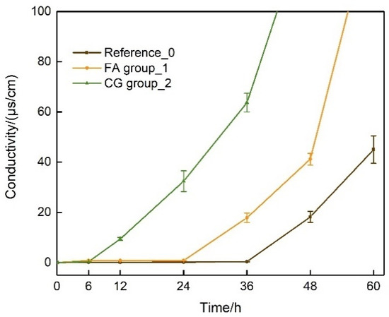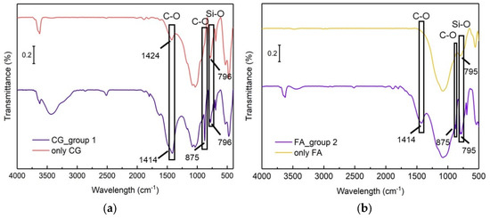 - CG and FA environments can significantly shorten the initiation time for urea hydrolysis and mineralization. The time for the occurrence of B. pasteurii mineralization is reduced by 72% when using CG and by 28% in the presence of FA.