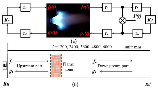 - Dowling, A.P. A kinematic model of a ducted flame. J. Fluid Mech. 1999, 394, 51–72. [Google Scholar] [CrossRef]