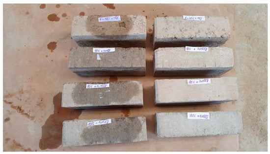 Compressed earth blocks (CEB) represent a widespread recent technique of earth construction discovered in the 1950s. They are considered as an evolution of old adobe, since the production process follows the same steps, only the compaction energy is increased. Furthermore, stabilization techniques (mechanical, physical, and chemical) have been used to improve their strength and durability. Nevertheless, earth blocks usually suffer from a lack of durability, low resistance to erosion, and low strength [5]. Many collapses have occurred after natural hazard disasters (e.g., monsoons, floods, storm surges, and tsunamis) in some regions around the world, which represents a major hindrance to the SDGs, and has led to the utilization of burned blocks and concrete bricks [5]. However, due to the low thermal performance, higher cost, and especially the higher environmental impact of these materials, renewed interest has been focused on environmentally friendly healthy earth-based building materials [6,7,8,9]. Many studies on CEBs have proved that the incorporation of Portland cement and additives to earth blocks allows for an increase in their mechanical properties and resistance to water [5,10,11,12,13,14].