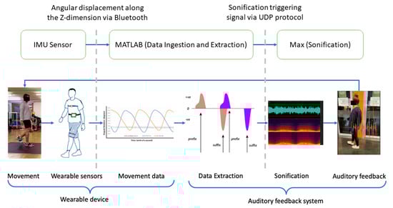 An overview of the design and the signal flow diagram of the wearable auditory feedback system.