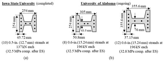 Summary of UHPC pile cross-sections investigated to date from (a) Iowa State University [13,41,44] and (b) the University of Alabama (unpublished work) [43].