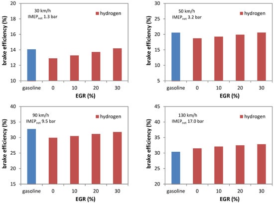 Brake efficiency at four different vehicle speed values and four levels of EGR for H2.
