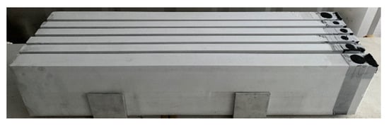 The cold storage plates were made of 2 mm thick aluminum alloy (outer dimensions: 1 m × 0.04 m × 0.2 m) and are shown in Figure 3 with a 3 cm filling port on the top, which is used for the water injection (5 kg of water per plate), and a PT100 sensor was placed in the center of the cold storage plates to measure the PCM temperature.
