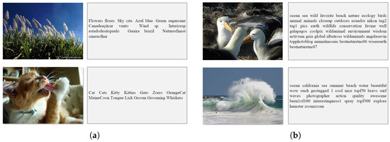 MIRFLICKR-25K. The MIRFLICKR-25K dataset includes 25,000 image-text pairs from the popular photo-sharing platform Flickr. Each image is accompanied by multiple text labels. In our experiment, we specifically selected instances with at least 20 text tags. With AlexNet [