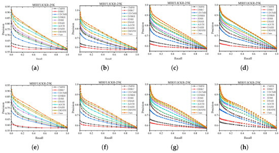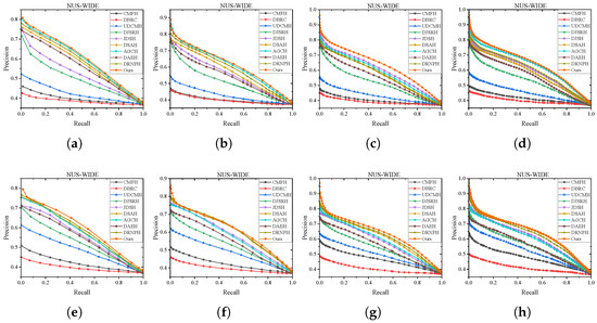 57], to assess the effectiveness of our method and its competitors. For the Hamming ranking protocol, we utilized mean average precision (mAP) to measure accuracy, while precision-recall curves (P-R curves) were employed for the Hash lookup protocol. For mAP and P-R curves, we considered images and texts to be similar if they shared at least one label; otherwise, they were considered dissimilar. Specifically, given a query