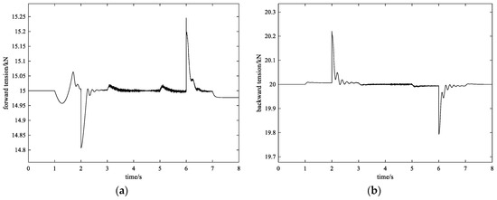 The tension control effect with method 2 under accurate prediction of Sh and SH. (a) The control effect of forward tension; (b) the control effect of backward tension.
