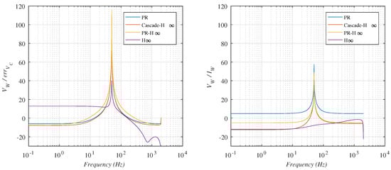 - is the current error weight. Three considerations have been taken into account. It is desired to obtain a controller with a resonant behaviour to achieve a small error at frequencies lower than 50 Hz and to reduce the controller’s effort at frequencies higher than 50 Hz. With these considerations, a weight in the form (15) has been tuned to achieve a closed-loop norm less than 1:where the variables are as follows: