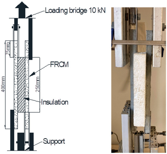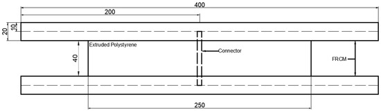 The experimental program included 40 specimens. The specimens consisted of a sandwich panel combining FRCM and extruded polystyrene, following the geometry in Figure 4.