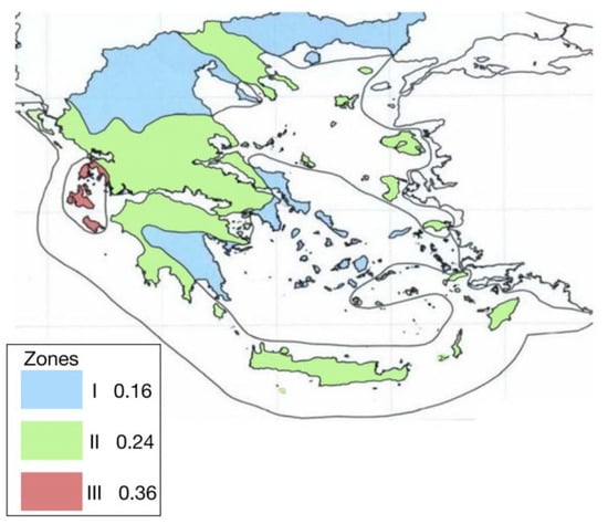 - Earthquake Planning and Protection of Organization of Ministry of Transport infrastructure, and Networks. New Seismic Hazard Zoning Map of Greece. Available online: http://www.oasp.gr/en (accessed on 20 December 2017).