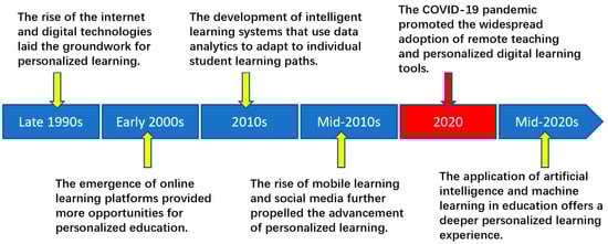 Timeline of key milestones in the evolution of personalized education in the digital era.