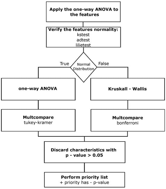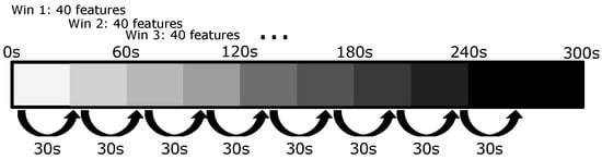 To explore the possibility of classifying subjects based on gender, age, BMI, and CWP, we extracted a comprehensive set of features from the vital signs data. We then conducted both visual and statistical analyses of these features to identify those capable of distinguishing between different class groups. Finally, we utilized the selected group of relevant features in the machine learning algorithms. Initially, we determined a broad set of 40 features within a 60 s window with a 50% overlap (30 s), as depicted in Figure 6.