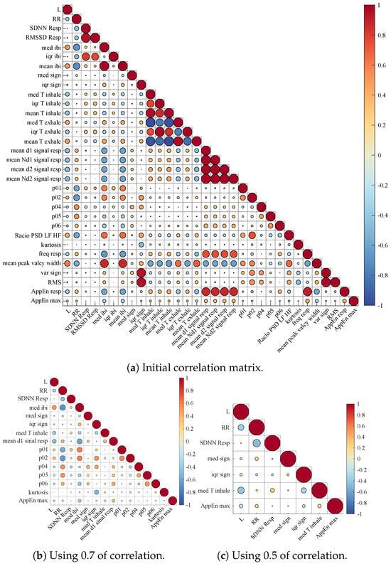 The Bio-Radar signal features were selected taking into account the ones typically used in the literature [,,,,,,], resulting in the following list:
