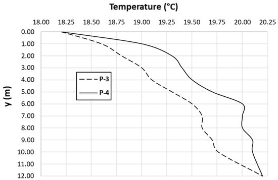 Real temperature–depth profiles measured in wells P-3 and P-4 of the Agua Amarga aquifer in March 2019.