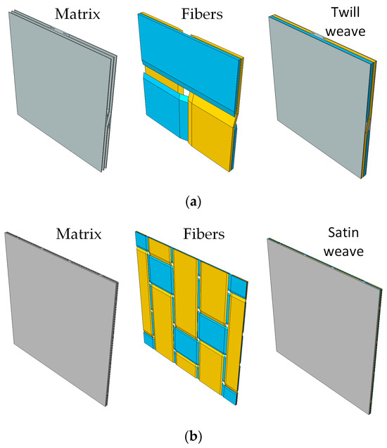 Mesoscale cell structure: (a) The twill weave mesoscale cell structure; (b) The satin weave mesoscale cell structure.